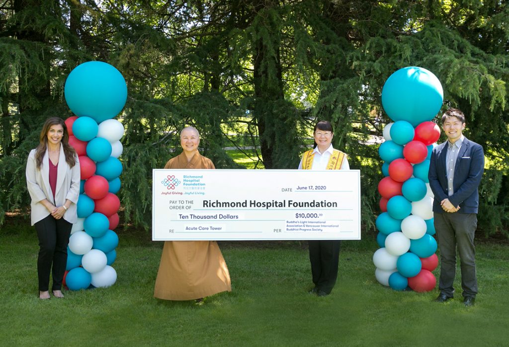 國際佛光會和溫哥華佛光山向列治文醫院「新急症護理大樓籌款行動」捐出 $50,000善款, 携手支持列治文醫護服務。