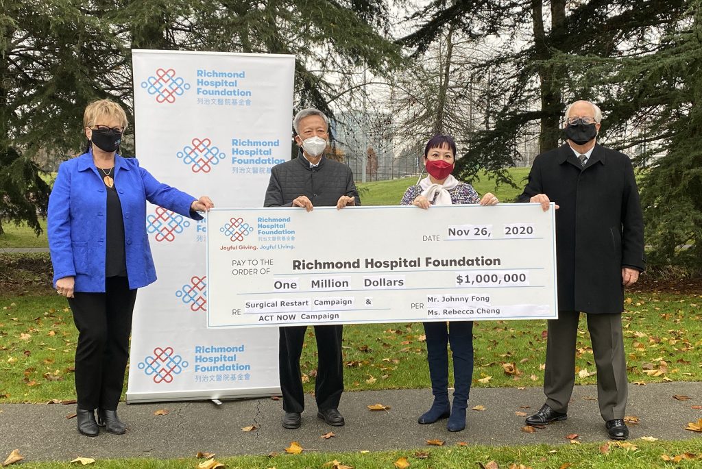 Mr. Fong and Ms. Cheng have also donated $300,000 to Richmond Hospital Foundation’s Surgical Restart campaign, committing to match your donations dollar for dollar up to $300,000. Starting today your donation will have double the impact on supporting our surgical teams and equipping them with new state-of-the-art equipment, bringing a new standard of care to surgery at Richmond Hospital.
