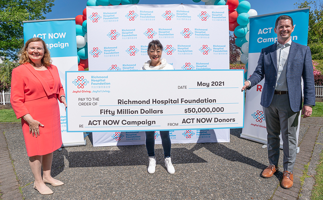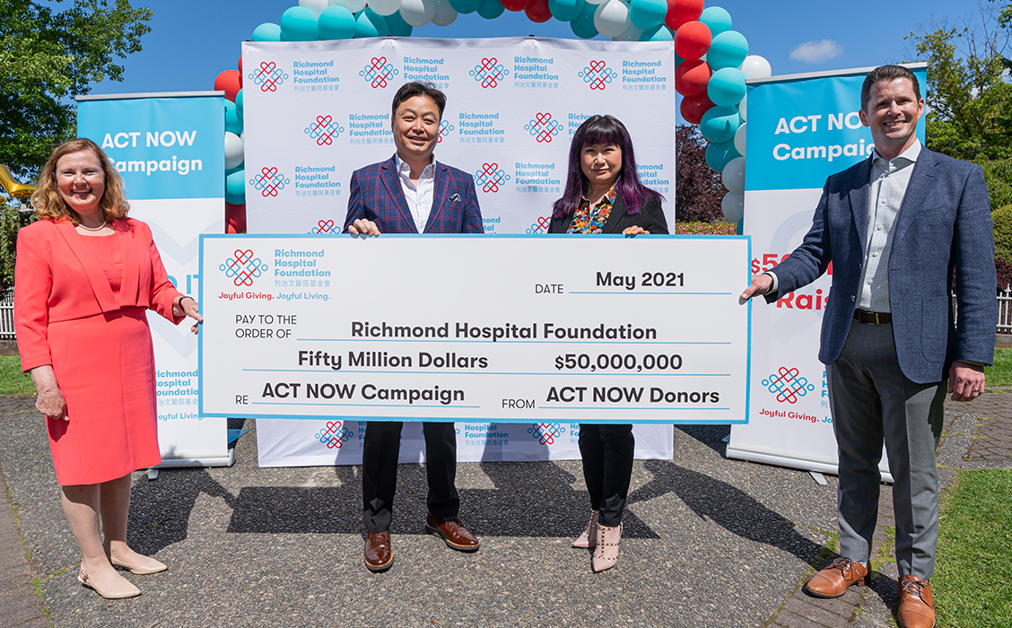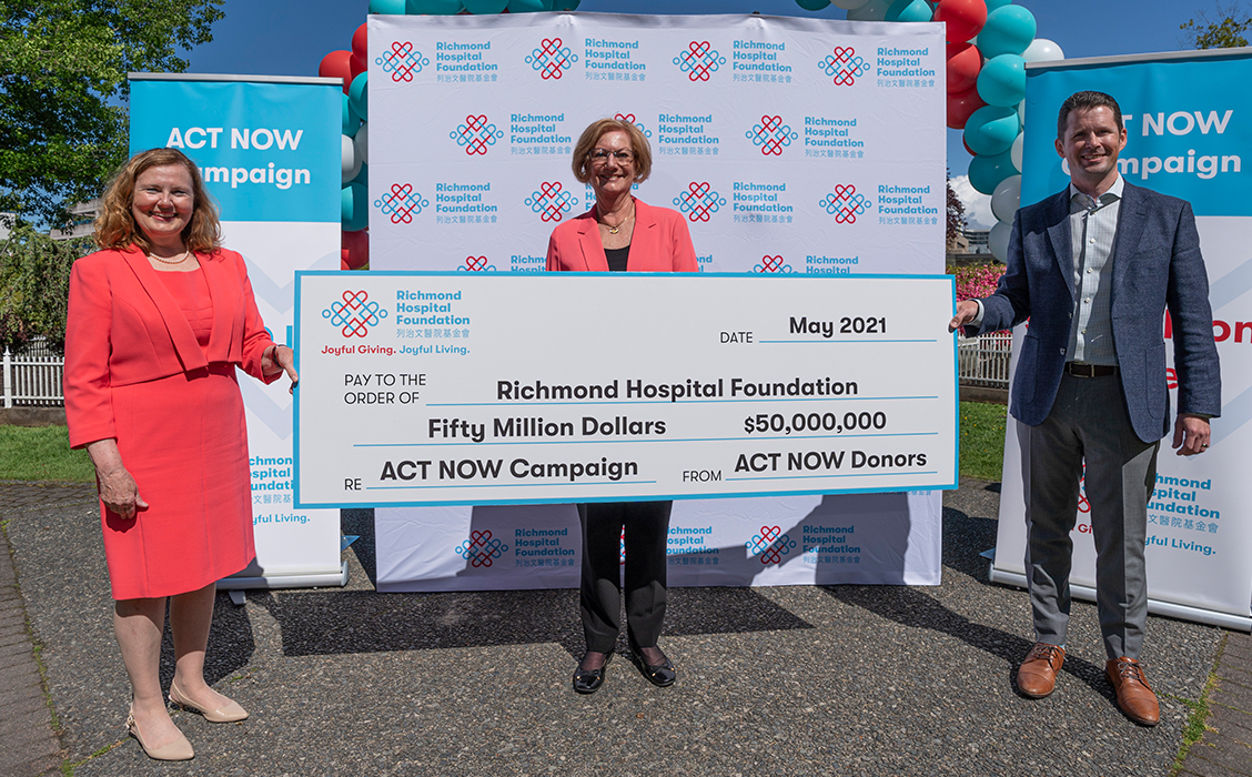 In 2017, Richmond Hospital Foundation launched its ACT NOW fundraising campaign—the largest capital campaign ever in Richmond. Thank you to every individual, family and business who has made a contribution to ensure the very best health care is available in Richmond, now and for future generations.